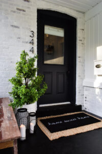 Uma das maneiras mais fáceis de tornar sua casa convidativa é dar um pouco de amor à entrada. Isso pode ser tão simples quanto uma mão de tinta na porta, adicionar um tapete de boas-vindas e alguns vasos de plantas.