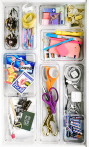– Gavetas de plástico – Essas gavetas vêm em uma variedade de tamanhos e são uma ótima maneira de organizar itens semelhantes sob pias ou armários.